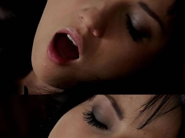 Classy raven model plays with her pink pussy