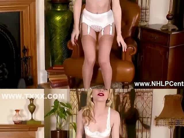 Golden-Haired Aston Wilde teases vintage underware heels nylon undresses pants wanks