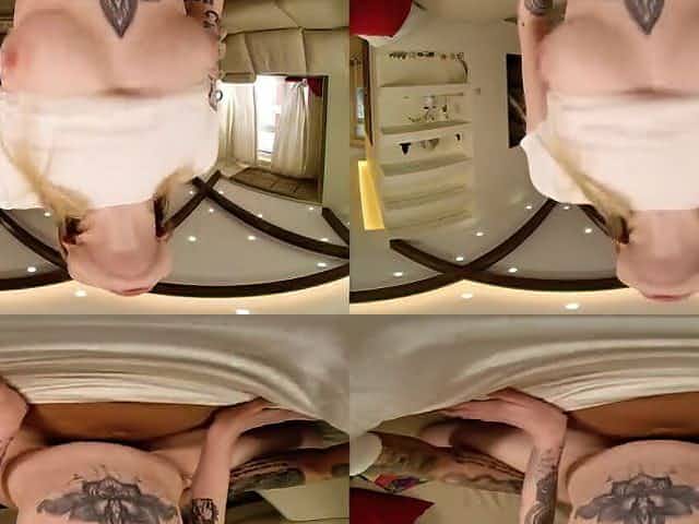 Horny tattooed Latina plays with herself in virtual reality