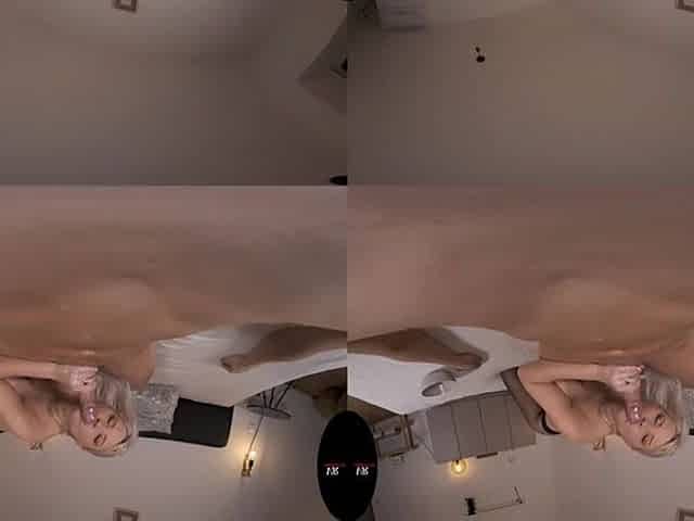 Adorable blonde masturbates in lingerie in virtual reality