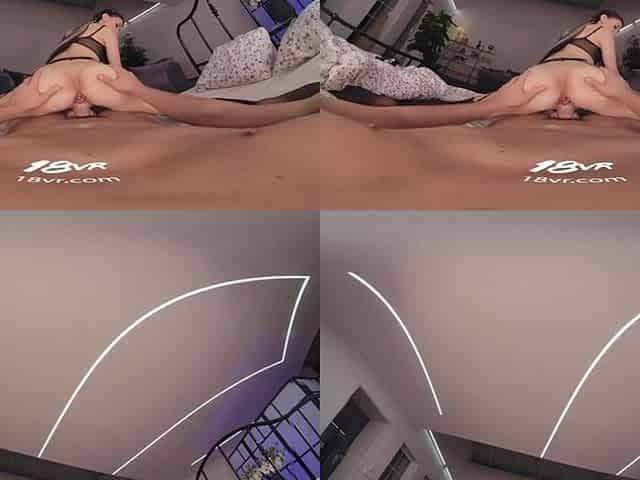 Gamer cutie rides her large sex toy in virtual reality