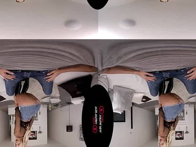 Hot girl alone, Jassy Classy rubs her shaved pussy and plays with a dildo in virtual reality