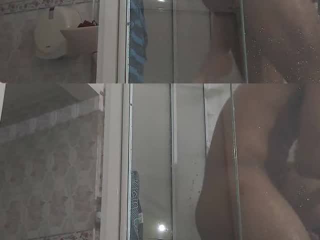 Peep. Voyeur. Housewife washes in the shower with soap, shaves her cunt in the bathroom. 1 three