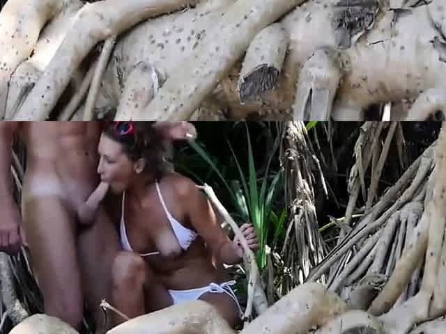 Mature amateur and his woman are enjoying in outdoor sex