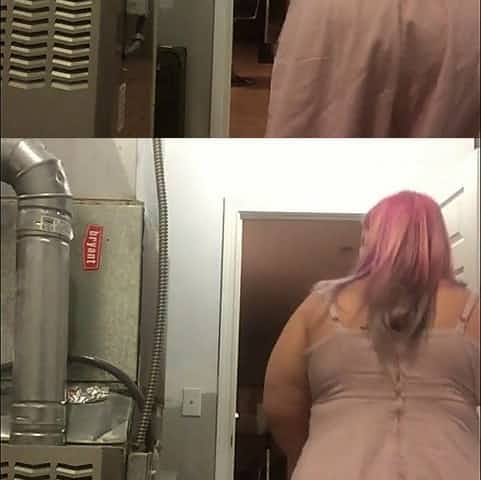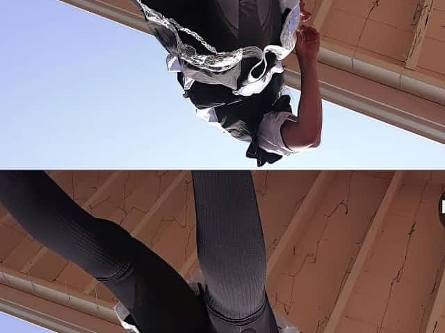UPSKIRT FETISH! French Maid Fixes Lights -- in broad daylight!