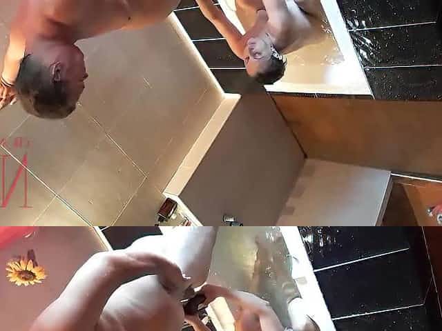 Peep. Voyeur. Housewife washes in the shower with soap, shaves her cunt in the bathroom. 1 three