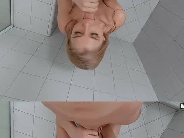cute girl being spied on in shower