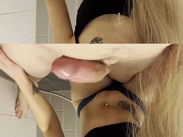 Micropenis voyeur jerking off with babe