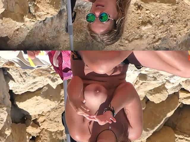 Young nudist on the beach she shows her big butt