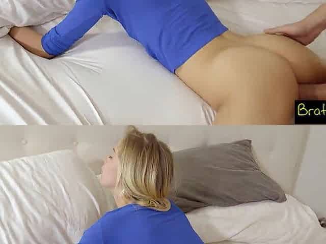 Slim Petite Foxy Blonde Seduces Her Step-dad Right Behind His Wife's Back