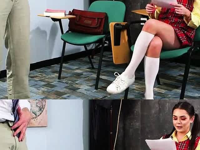 21yo in college uniform teases professor wanker