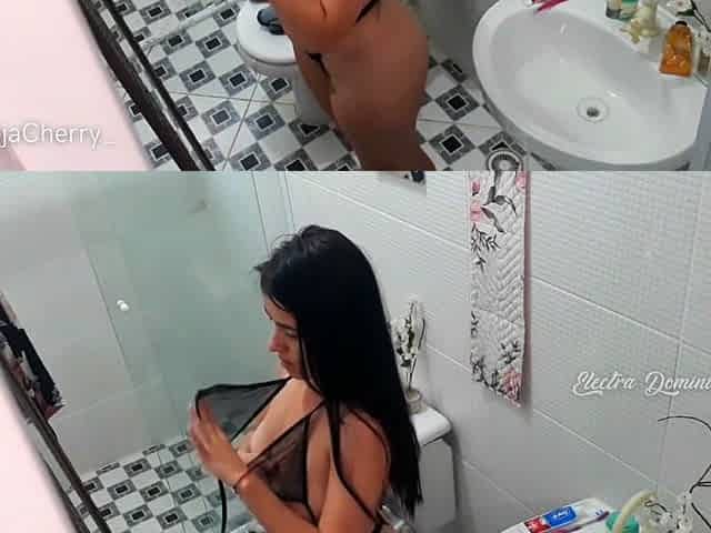 Voyeuristic footage captures sexy teen switching in the shower