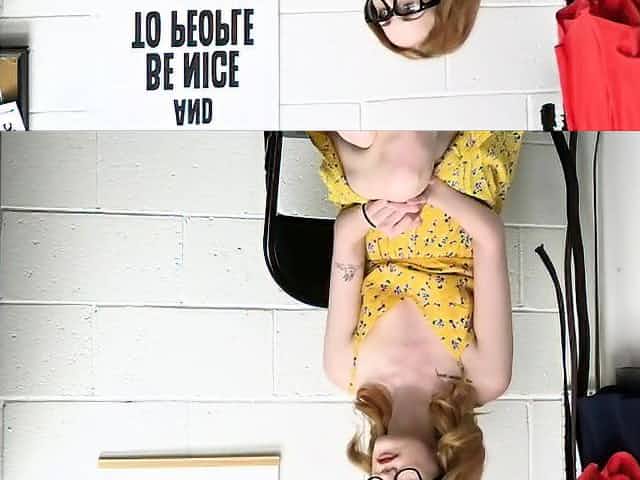 Nerdy blonde busted with stolen items so she gets fucked
