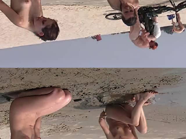 Naughty young nudists play with each other in sand