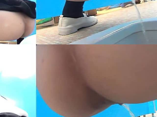 Asian teens pee outdoors
