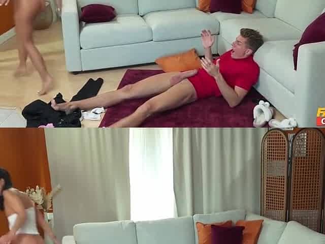 Surprise Party! Lewd Mamma and her Serf dude with a large rod bang 2 youthful shy whores!