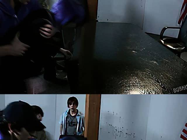Walking through the diner with his sperm on her lovely face