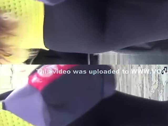 Upskirt shots of auburn-haired gals in a public place