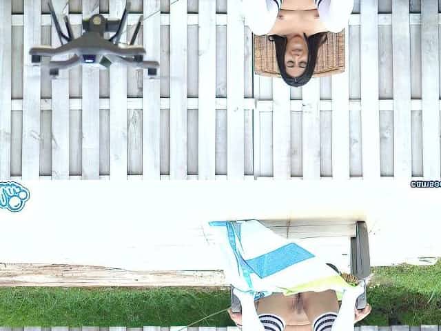 lesbian teen threesome play tug a war with a drone and their college pussy