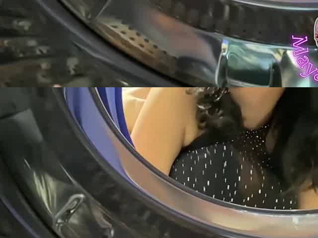 Sinful babe caught in the washing machine fucked by her boyfriend