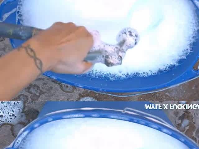 Fatty ebony wife helping spouse washing car.mp4