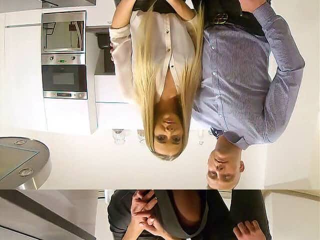 Kitchen sex between a stranger and Amalia Davis while hubby watches
