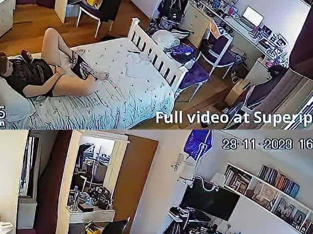 IPCAM – Redhead girl masturbates while watching wild porn