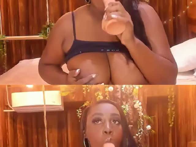 Fool of a boyfriend watches his babe tasting the African sausage