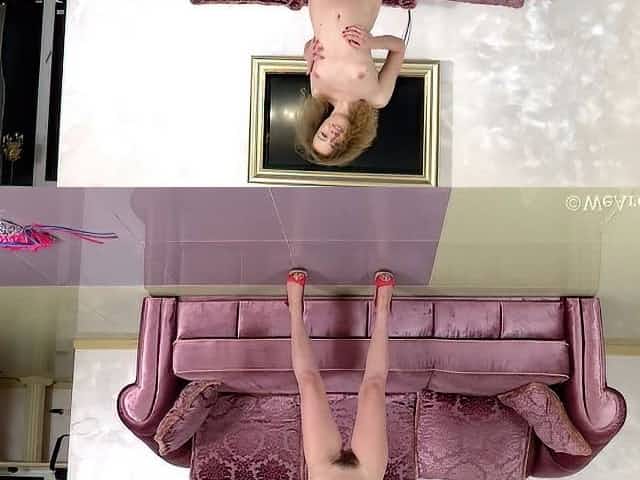 Virgin gets naked by mirror and masturbates wildly