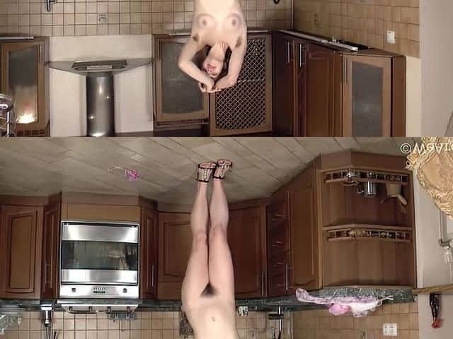 In the kitchen, Ryisya strips naked and shows off