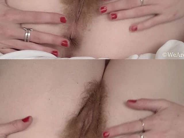 Hairy babe Ksenija is playing in the bed