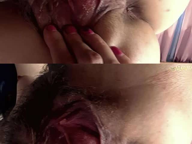Era fingers her hairy pussy