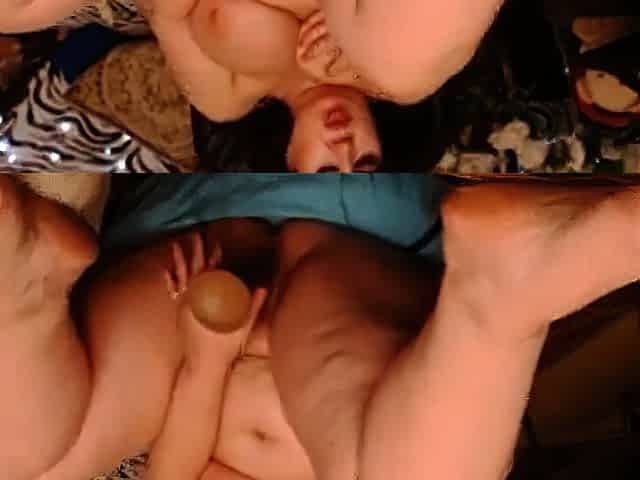 Large amateur cam woman uses two of her toys to masturbate