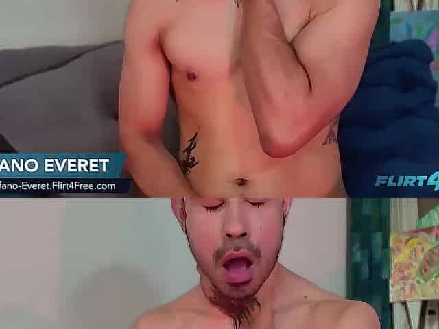 Flirt4Free - Stefano Everet - Bushy Tattooed Man Strokes His Schlong and Stretches His Rectal Hole