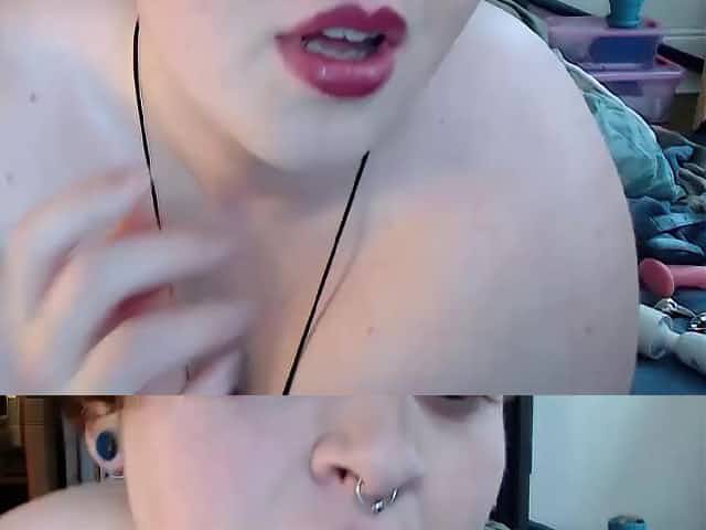 Busty cam girl plays with her big pussy lips