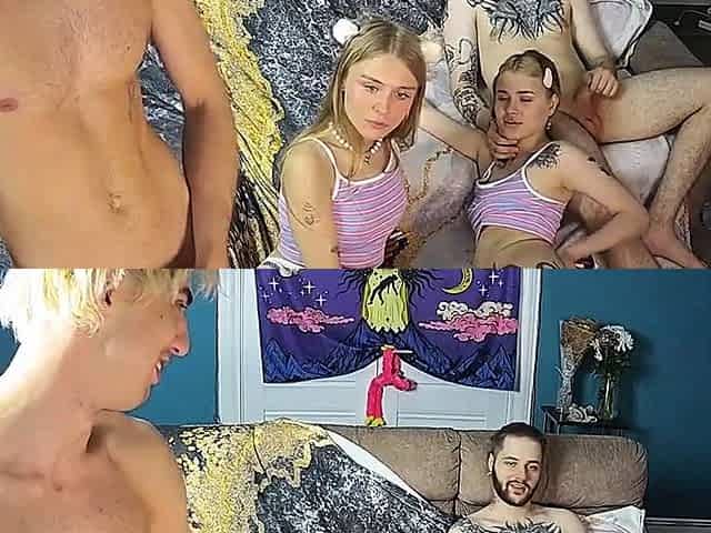 2 Teen Camgirls and a guy - threesome hardcore show