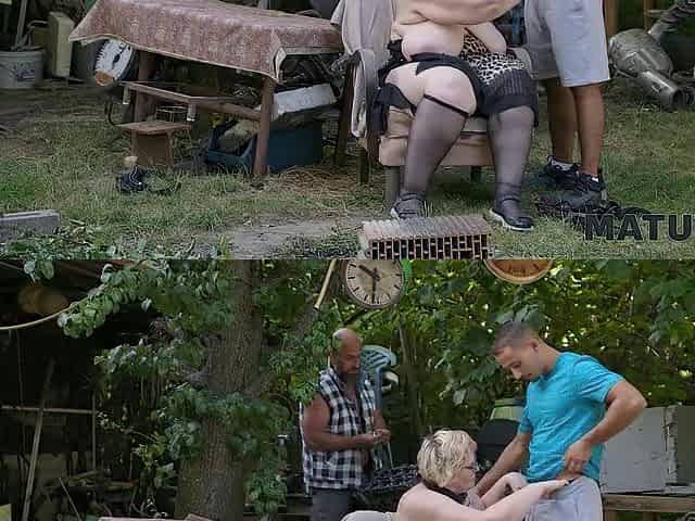 MATURE4K. Kinky outdoor sex between mature woman and 2 strangers