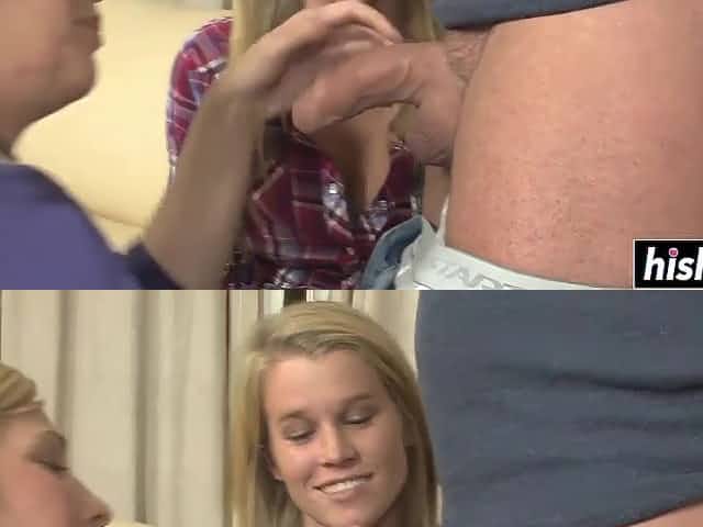Nerdy dude is pounding the wet pussies of two smoking hot teens in a threesome