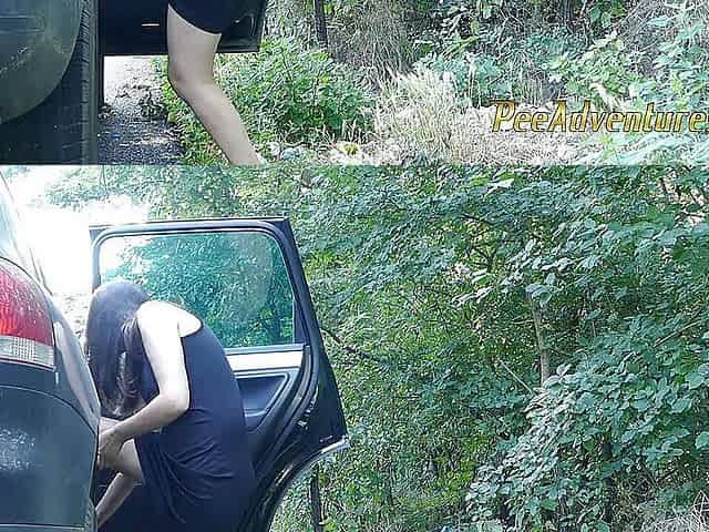 Changing my wet clothes outdoor, late for a meeting I had to pull over and pee trough pantyhose