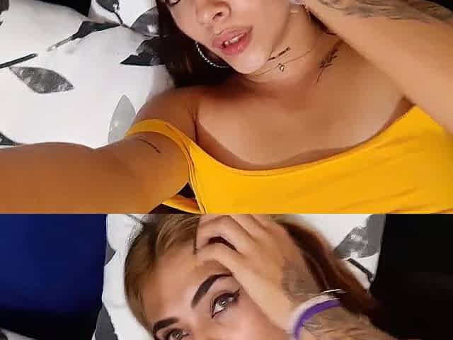 Lesbos in wet and messy clothes touch and kiss