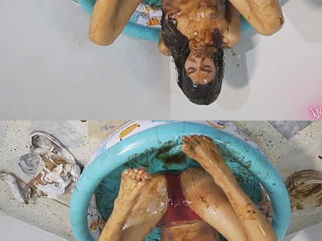 Changing her wet clothes outdoor and talking