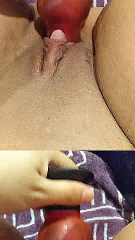 my constricted twat, stretched out by my favourite sex-toy.