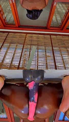 Dp for my large butt! Screwing anal opening and vagina with two dildos