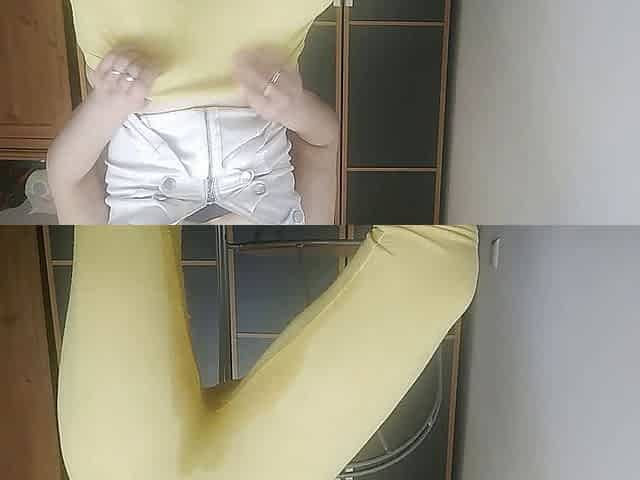 Wetting in yellow yoga pants and big ass twerking