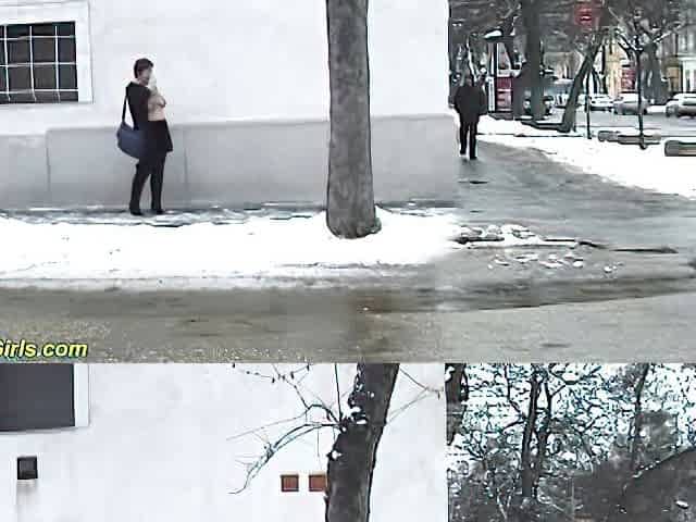 Jeans wetting and removing in the street