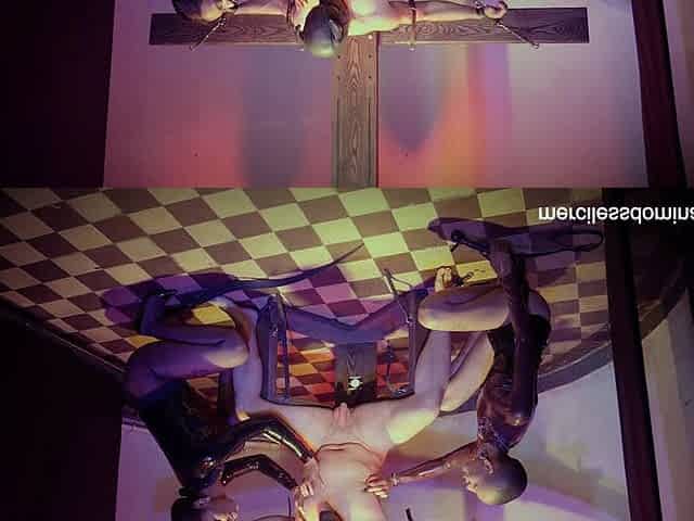 Tempting latex perverted BDSM femina seduces trapped guy