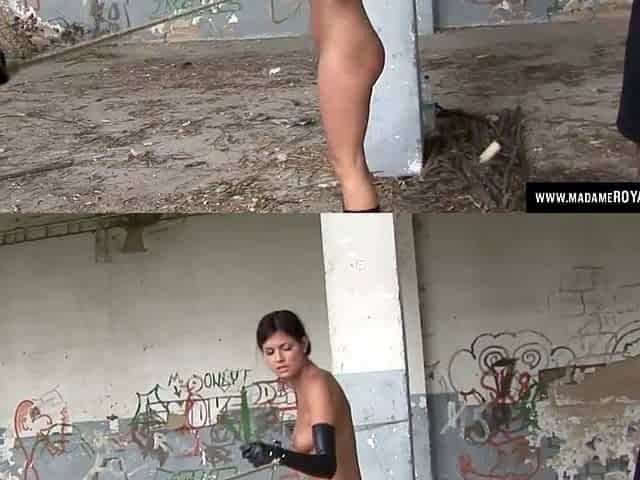 Outdoor spanking, slave, whip punishment