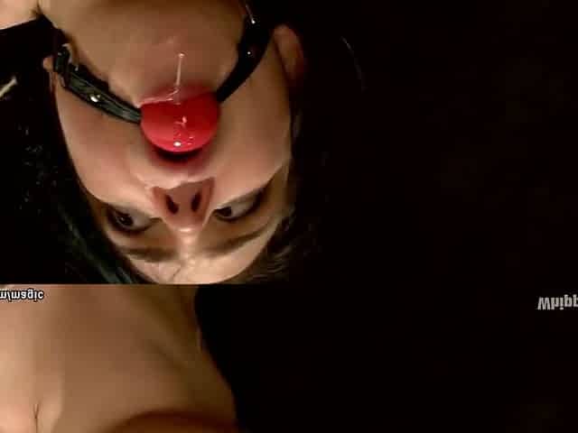 Bound slave slut whipped hard until she drools and snot