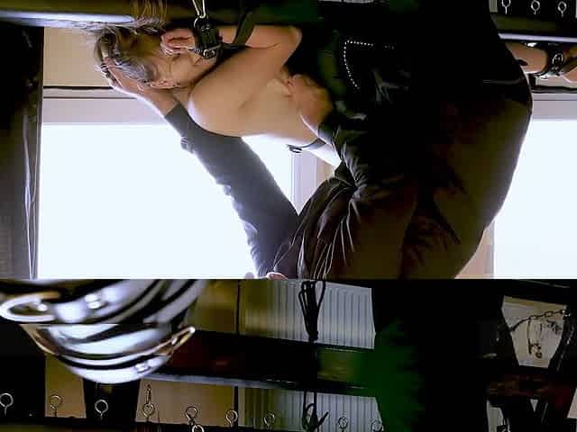 Humiliating hanging out whipping threesome