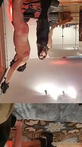 Slave tied up and whipped